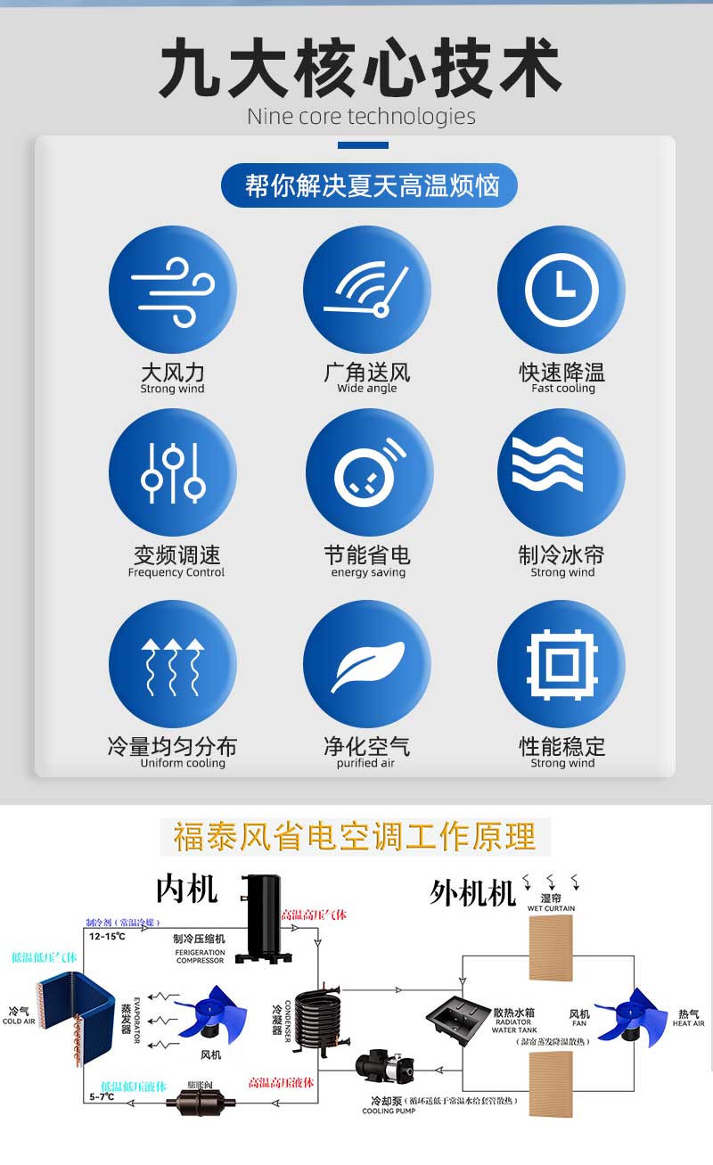 福泰風(fēng)工業(yè)省電空調(diào)憑借“蒸發(fā)冷卻+變頻節(jié)能”技術(shù),成為工業(yè)降溫領(lǐng)域的標(biāo)桿品牌,為本地工廠提供高效、經(jīng)濟(jì)的解決方案。